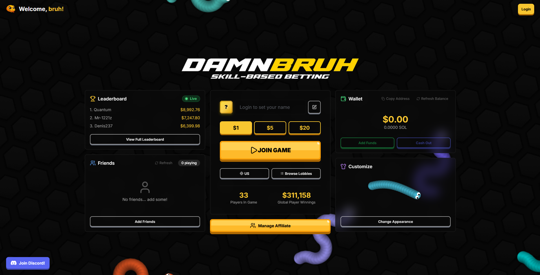 Play DamnBruh — Real‑time multiplayer snake game with SOL rewards